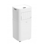 L'ARGO LARI ART è un condizionatore portatile monoblocco da 8000 BTU/h, ideale per ambienti fino a circa 25 m². Il suo design minimalista con finitura opaca bianco puro si integra facilmente in qualsiasi ambiente domestico. Dotato di pannello comandi digitale con tasti soft-touch e display a LED, offre un'interfaccia utente intuitiva. Il telecomando “user friendly” consente un controllo remoto agevole. Le funzioni disponibili includono raffrescamento, ventilazione e deumidificazione. La funzione “Sleep” garantisce comfort durante il sonno, mentre la funzione “Memory” permette l'auto-restart dopo un black-out, mantenendo le ultime impostazioni. La funzione di “Auto-diagnosi” mostra eventuali errori sul display, semplificando le operazioni di manutenzione. La funzione “Blocco-bambino” assicura un utilizzo sicuro. Il ventilatore a 2 velocità e il filtro dell’aria lavabile, facilmente rimovibile, completano le caratteristiche tecniche. La vaporizzazione automatica della condensa in funzione climatizzazione e la possibilità di scarico continuo della condensa in modalità deumidificazione aumentano l'efficienza dell'apparecchio. La massima trasferibilità è garantita dalle ruote multidirezionali e dalle pratiche maniglie laterali.